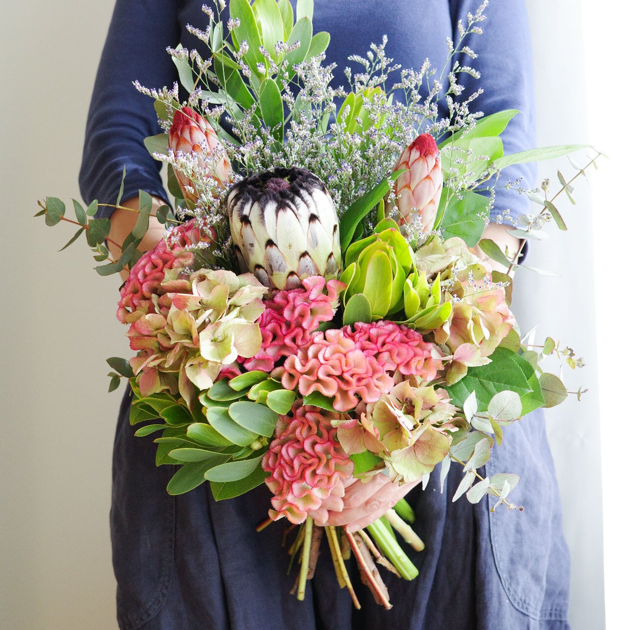 時間の経過とともに表情を変えるブーケは、ご自宅用・ギフト共に長く楽しめるお花として人気です。