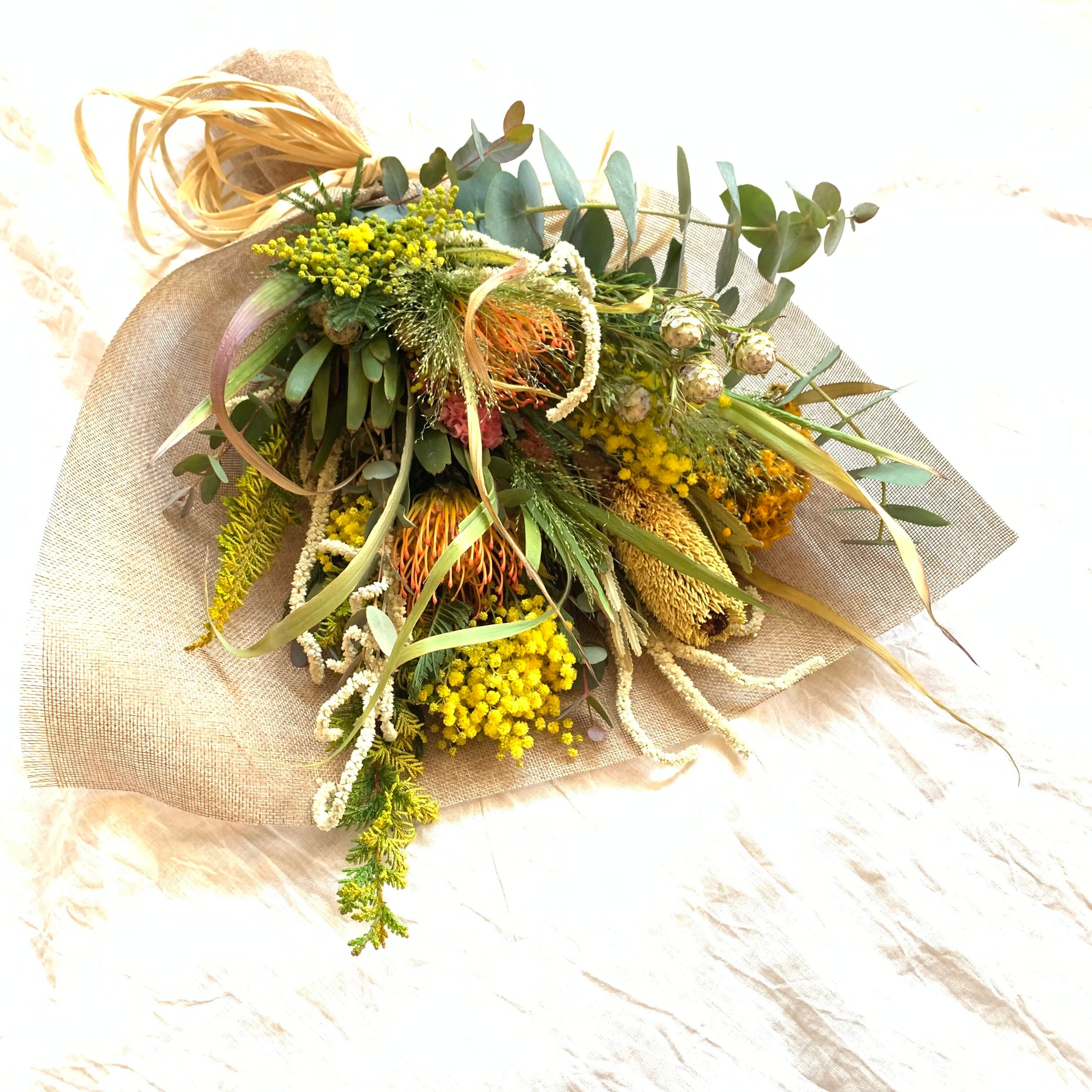 【母の日早着遅着割~5/6着・5/12~31着】ドライになるフレッシュブーケ|時間をたのしむ贈りもの お花おまかせ Mサイズ